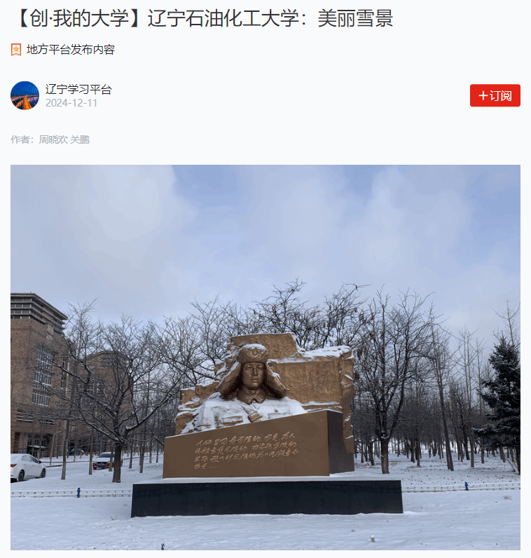 編者按:近日,學習強國遼寧學習平臺對我校的冬日雪景以圖集形式對此進行了宣傳。現將報道轉載如下: