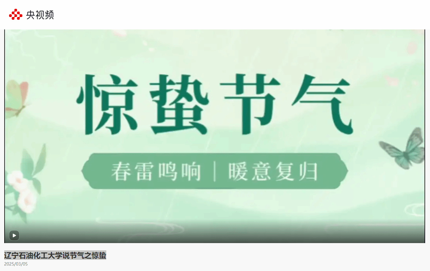 編者按:新學期、新征程,學校新媒體中心學生制作說24節氣之驚蟄視頻。央視頻對此進行了宣傳報道。現將相關報道轉載如下:
