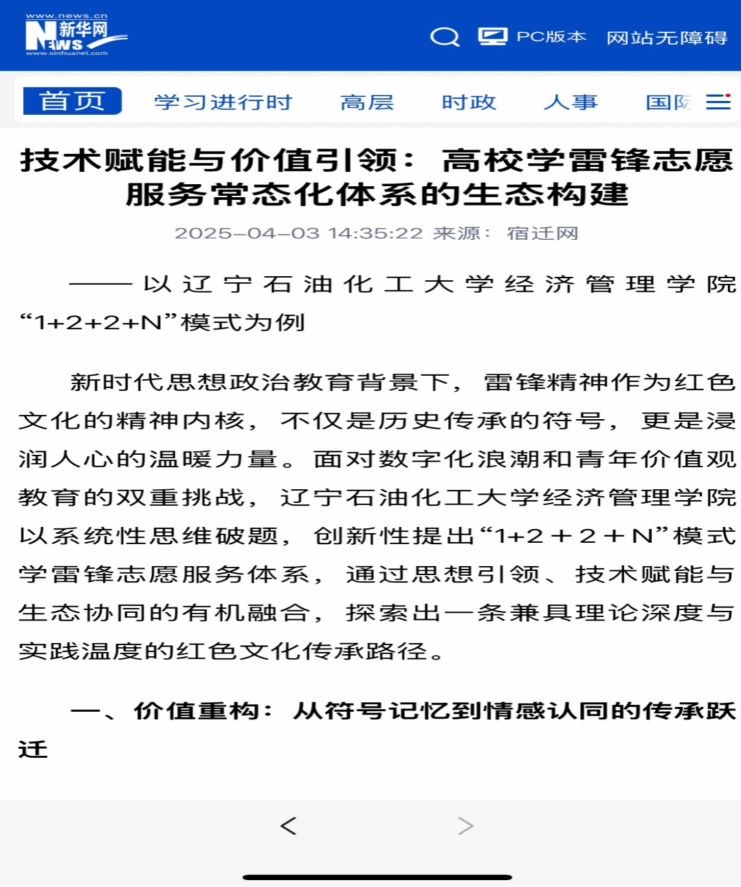 編者按:近日,新華網(wǎng)、中國網(wǎng)、中國日?qǐng)?bào)網(wǎng)等媒體平臺(tái)對(duì)我校經(jīng)濟(jì)管理學(xué)院駱圣坤老師、王耀文同學(xué)撰寫的文章《技術(shù)賦能與價(jià)值引領(lǐng):高校學(xué)雷鋒志愿服務(wù)常態(tài)化體系的生態(tài)構(gòu)建——以遼寧石油化工大學(xué)經(jīng)濟(jì)管理學(xué)院“1+2+2+N”模式為例》進(jìn)行了轉(zhuǎn)載報(bào)道。現(xiàn)將相關(guān)報(bào)道轉(zhuǎn)載如下: