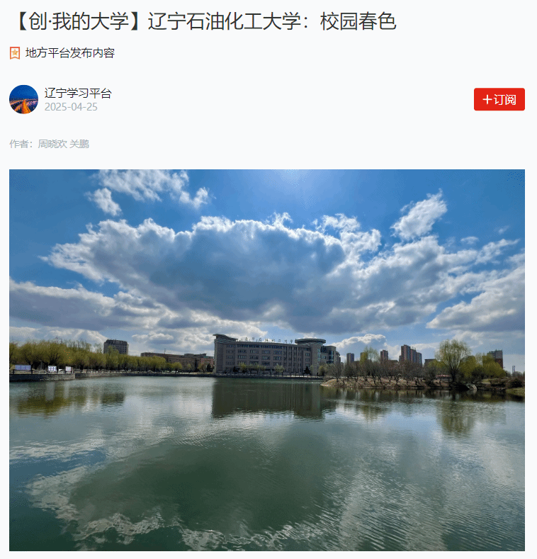 編者按:4月25日,學(xué)習(xí)強(qiáng)國遼寧學(xué)習(xí)平臺對我校周曉歡、關(guān)鵬老師拍攝的校園春色美景以圖集的形式做了宣傳報(bào)道。現(xiàn)將相關(guān)報(bào)道轉(zhuǎn)載如下: