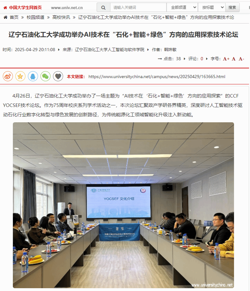 編者按:遼寧石油化工大學(xué)人工智能與軟件學(xué)院成功舉辦了AI技術(shù)在“石化+智能+綠色”方向的應(yīng)用探索技術(shù)論壇。中國大學(xué)生網(wǎng)對此進(jìn)行了宣傳報道。現(xiàn)將相關(guān)報道轉(zhuǎn)載如下: