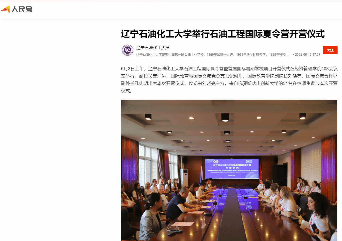 編者按:6月3日上午,遼寧石油化工大學(xué)石油工程國際夏令營暨首屆國際暑期學(xué)校項(xiàng)目開營儀式在經(jīng)濟(jì)管理學(xué)院408會議室舉行。人民日報(bào)客戶端·人民號、遼寧日報(bào)·遼望號、搜狐號、中國大學(xué)生網(wǎng)等媒體平臺對此進(jìn)行了宣傳報(bào)道。現(xiàn)將相關(guān)報(bào)道轉(zhuǎn)載如下:
