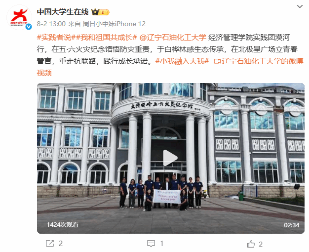 編者按:經(jīng)濟(jì)管理學(xué)院實(shí)踐團(tuán)漠河行,在五·六火災(zāi)紀(jì)念館悟防災(zāi)重責(zé),于白樺林感生態(tài)傳承,在北極星廣場(chǎng)立青春誓言,重走抗聯(lián)路,踐行成長(zhǎng)承諾。教育部中國(guó)大學(xué)生在線官方微博對(duì)此進(jìn)行了宣傳報(bào)道。現(xiàn)將相關(guān)報(bào)道轉(zhuǎn)載如下: