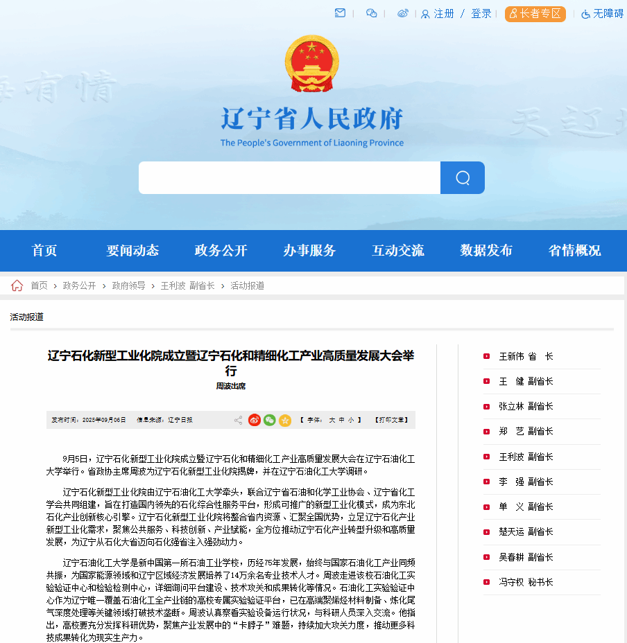 遼寧省人民政府網:https://www.ln.gov.cn/web/zwgkx/zfld/gcy_fsz/hdbd/2025090609303028530/index.shtml