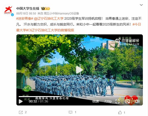 編者按:2025級(jí)學(xué)生軍訓(xùn)揚(yáng)帆啟程! 當(dāng)青春遇上迷彩,注定不凡。 汗水與毅力交織,成長(zhǎng)與蛻變同行。教育部中國(guó)大學(xué)生在線官方微博對(duì)我校制作的學(xué)子軍訓(xùn)視頻進(jìn)行了宣傳報(bào)道。現(xiàn)將相關(guān)報(bào)道轉(zhuǎn)載如下:
