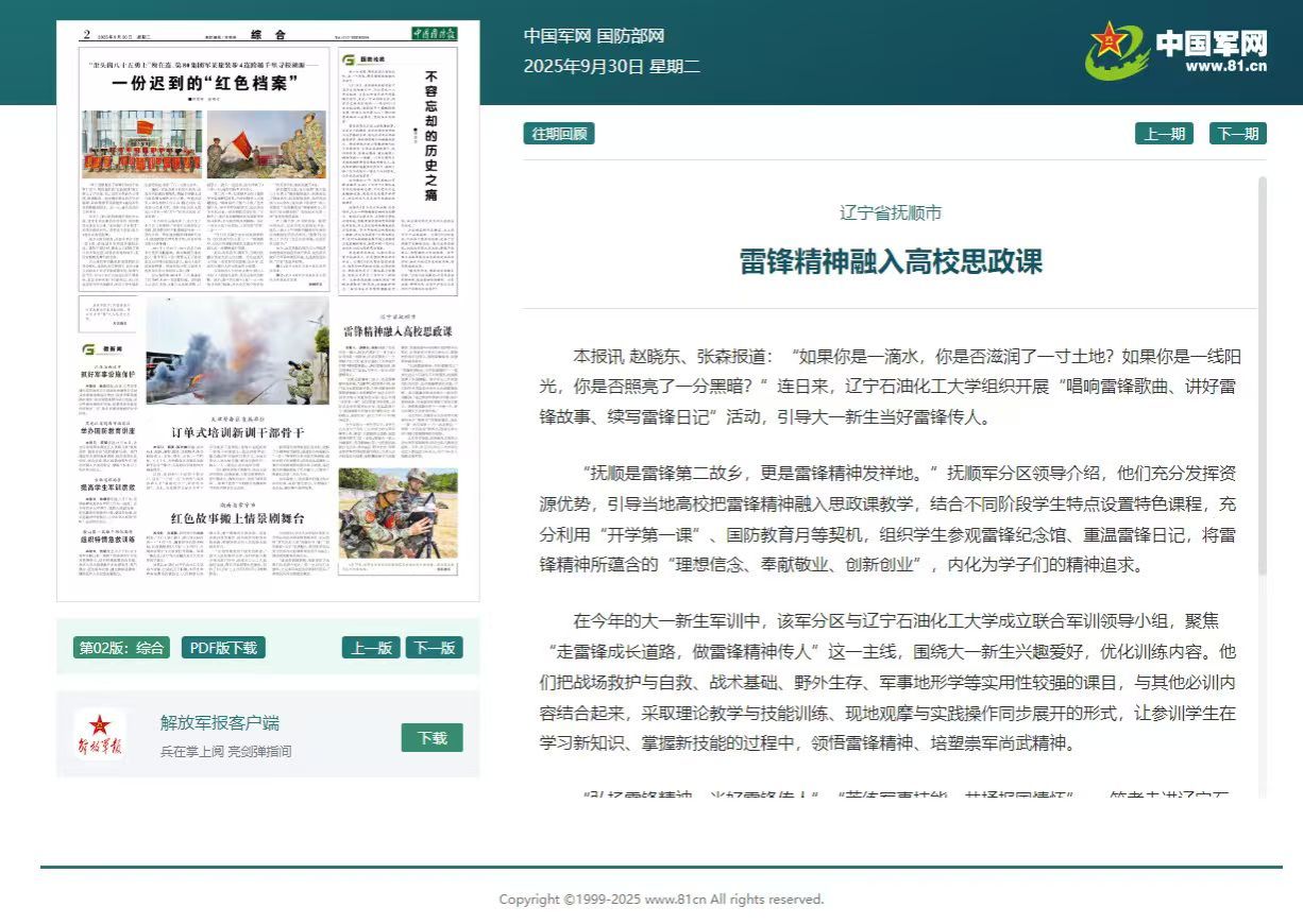 中國軍網(wǎng):http://www.81.cn/szb_223187/gfbszbxq/index.html?paperName=zggfb&paperDate=2025-09-30&paperNumber=02&articleid=964254