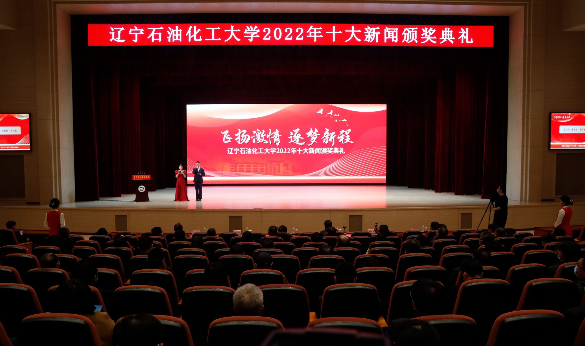 十大新聞頒獎典禮至今已經成功舉辦了四屆,是學校激勵先進、樹立典型,同心筑夢、砥礪前行的重要平臺,也是學校廣泛匯聚團結奮斗正能量的重要載體。此次頒獎典禮的成功召開勢必將進一步鼓舞遼石化大人的士氣,增強全校師生對學校高質量發展的信心和決心,激發他們在學校發展新征程中增進愛校榮校情感、夯實為校爭光信念,共同為譜寫2023年遼寧石油化工大學踔厲奮發、日新月異的嶄新篇章貢獻力量!(撰稿人:婁永利 王曉艷 校對人:周曉歡 審稿人:陳雪峰/張永利 攝)