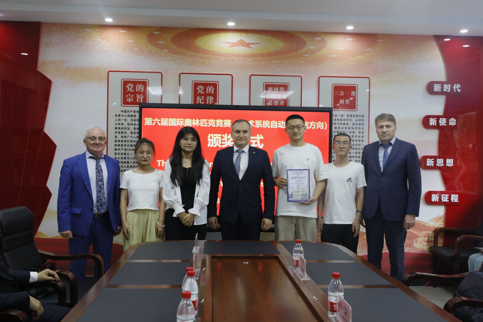 參觀結束后,兩校領導為信息與控制工程學院在2023年3月份線上舉行的俄羅斯奧林匹克競賽(控制系統自動化基礎方向)的獲獎同學進行頒獎,在表示祝賀的同時希望通過這樣的校際交流活動,實現兩校更多的交流與合作。