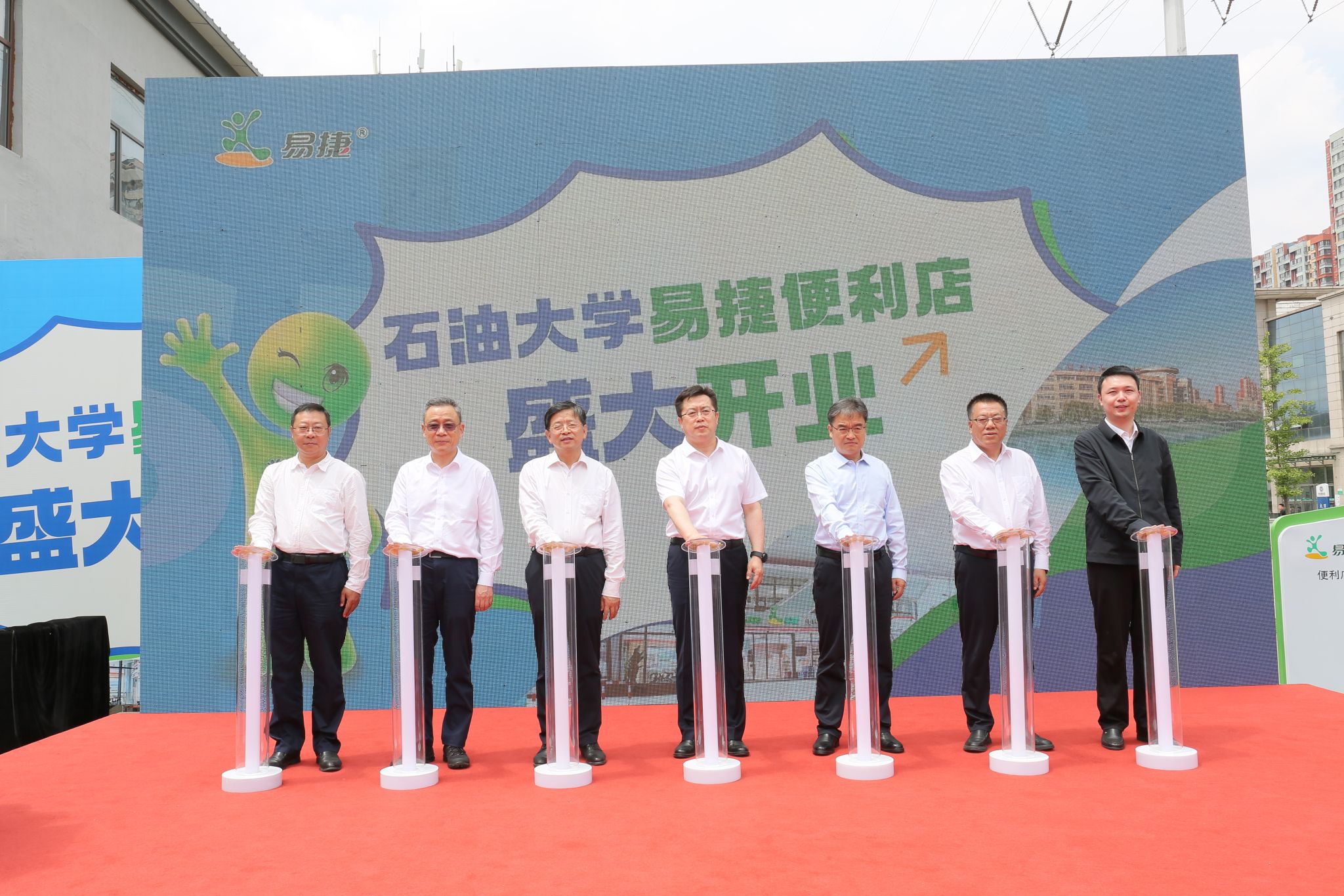 隨后,錢建華與羅曉東代表雙方為“校企融合示范店”揭牌。到場的領導、嘉賓為中國石化遼寧石油化工大學易捷校園旗艦店做開業儀式啟動,共同見證東北區域首個易捷校園旗艦店正式開業。