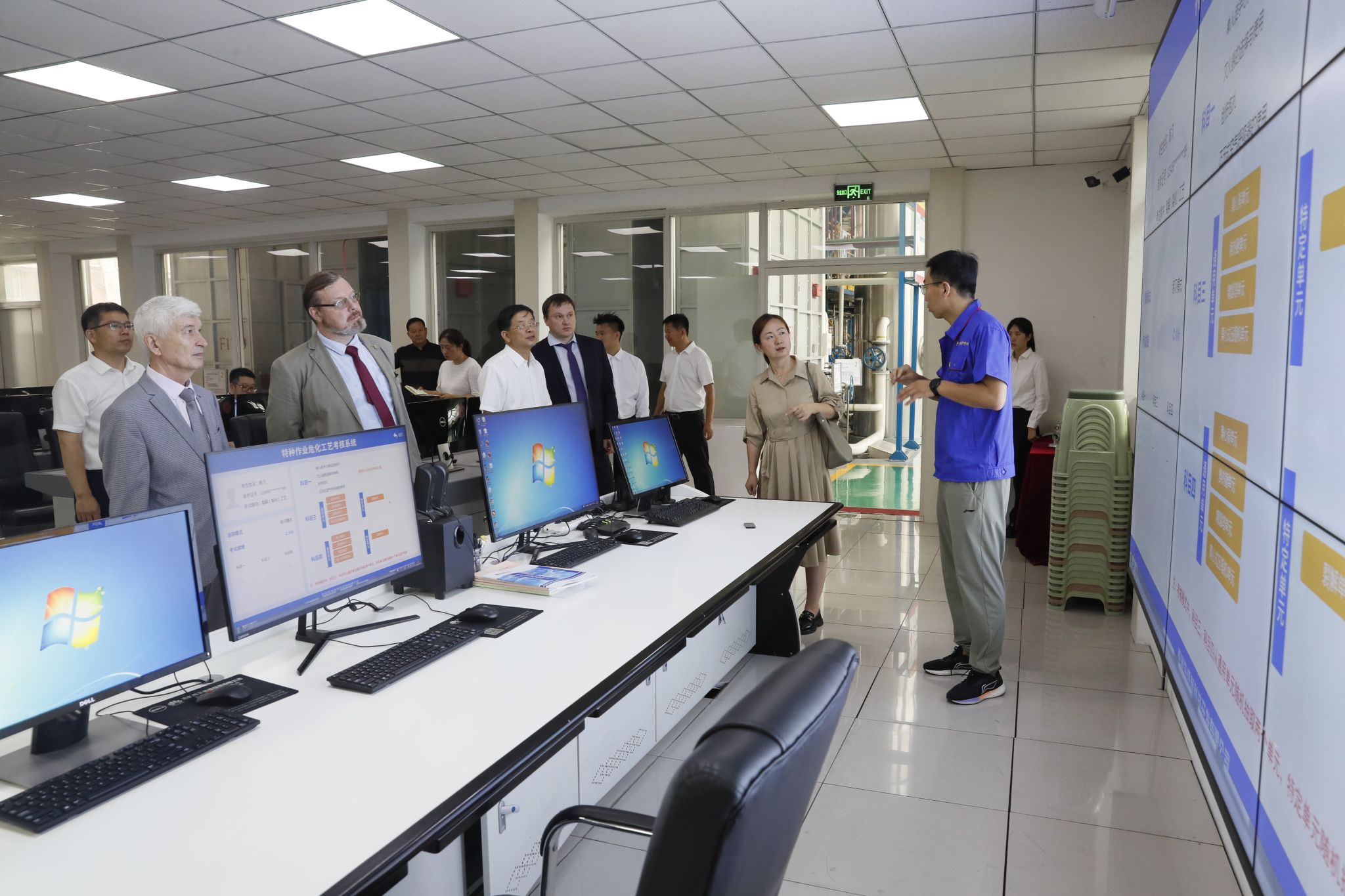 俄羅斯專家團(tuán)一行,在錢建華、曹江濤、楊占旭等的陪同下先后參觀了遼寧省石化產(chǎn)業(yè)技術(shù)創(chuàng)新研究院、遼寧省石油化工催化科學(xué)與技術(shù)重點(diǎn)實(shí)驗(yàn)室、石油化工產(chǎn)業(yè)鏈實(shí)訓(xùn)培訓(xùn)基地。在遼寧省石化產(chǎn)業(yè)技術(shù)創(chuàng)新研究院,俄羅斯專家團(tuán)走進(jìn)聚烯烴材料分析室、催化劑評(píng)價(jià)實(shí)驗(yàn)室、電化學(xué)儲(chǔ)能實(shí)驗(yàn)室等實(shí)驗(yàn)室,深入了解研究院關(guān)鍵技術(shù)研發(fā)、成果轉(zhuǎn)移轉(zhuǎn)化、企業(yè)孵化培育等方面情況。在遼寧省石油化工催化科學(xué)與技術(shù)重點(diǎn)實(shí)驗(yàn)室,俄羅斯專家團(tuán)聽取了該實(shí)驗(yàn)室在新型催化材料及工藝、清潔燃料生產(chǎn)工藝與催化劑、重質(zhì)油深度加工新技術(shù)等方面的研究成果以及承擔(dān)國際、國家及行業(yè)重大項(xiàng)目情況。俄羅斯專家團(tuán)還走進(jìn)作為學(xué)校實(shí)踐教學(xué)改革標(biāo)志性成果之一的石油化工產(chǎn)業(yè)鏈實(shí)訓(xùn)培訓(xùn)基地,實(shí)地了解平臺(tái)建設(shè)及學(xué)生實(shí)踐教學(xué)情況,高度評(píng)價(jià)了這一覆蓋石油化工全產(chǎn)業(yè)鏈的虛擬仿真實(shí)踐教學(xué)平臺(tái)。