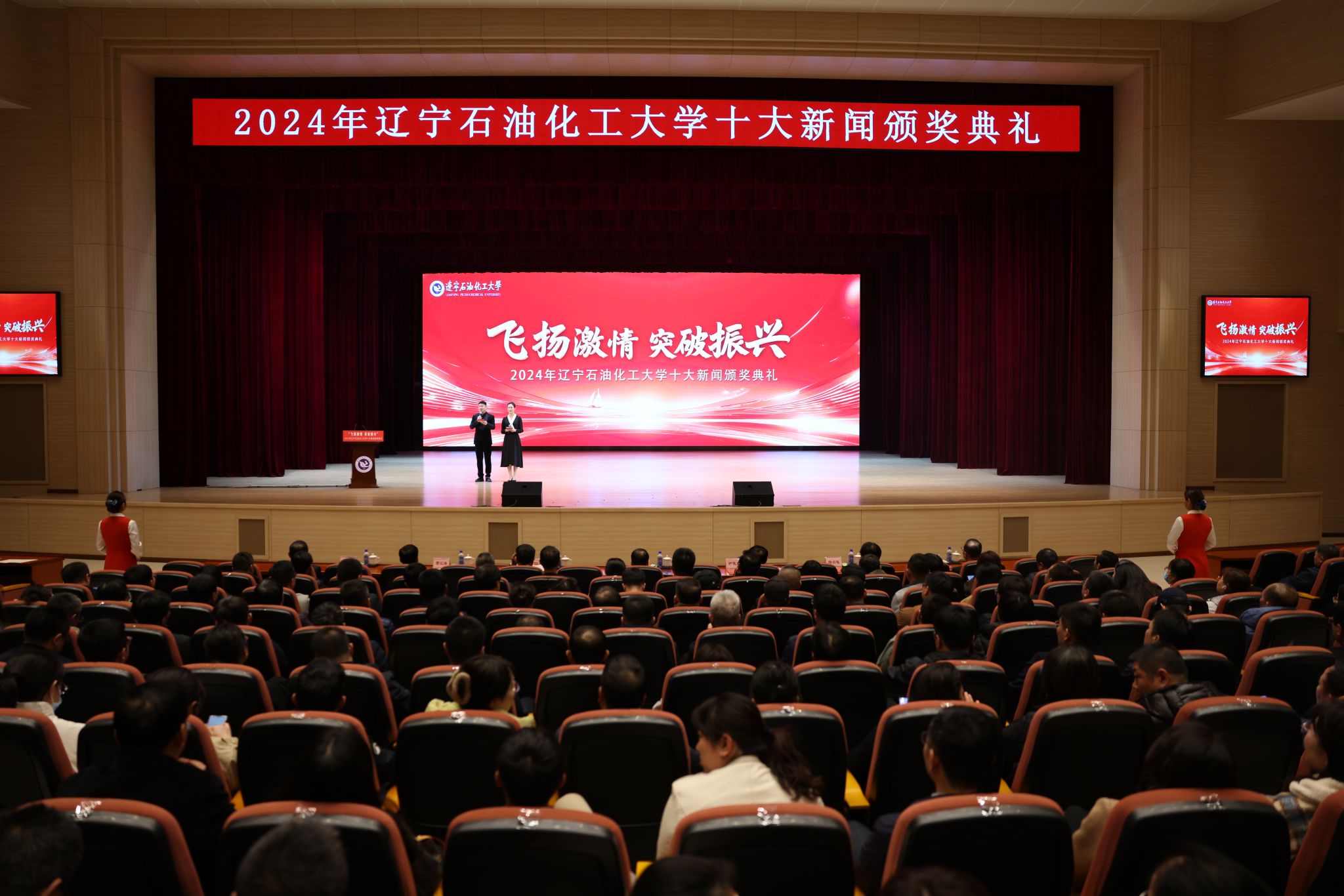 不忘初心來時路,賡續(xù)前行奏新章。3月14日下午,遼寧石油化工大學“飛揚激情 突破振興”2024年十大新聞頒獎典禮在大學生活動中心報告廳舉行。校領導、科級及以上干部、教師代表、學生代表等千余人齊聚一堂,共同回顧2024年學校事業(yè)發(fā)展的輝煌成就,凝聚起全校師生開拓進取,助力振興突破的磅礴力量。典禮由呂途、趙宇主持。