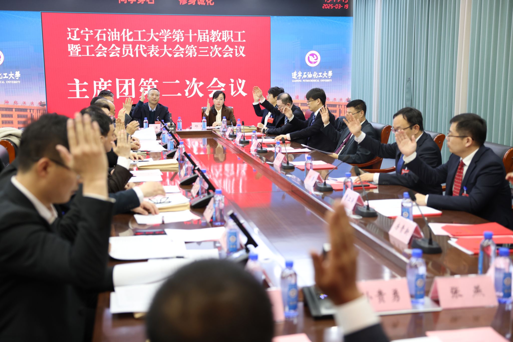 13時(shí)30分,主席團(tuán)第二次會(huì)議聽取了各代表團(tuán)討論情況的匯報(bào),審議了行政工作報(bào)告決議(草案)、工會(huì)工作報(bào)告決議(草案)、財(cái)務(wù)工作報(bào)告決議(草案)、《遼寧石油化工大學(xué)章程(2025年修訂)》決議(草案)。