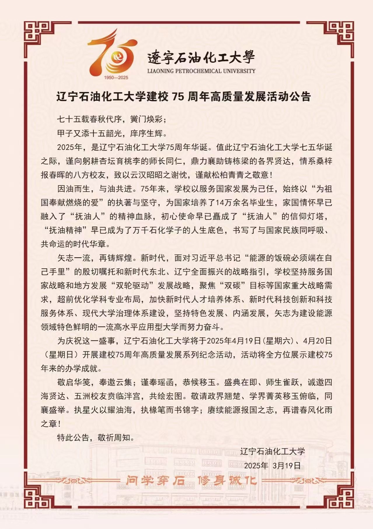 下一條: 遼寧石油化工大學(xué)建校75周年高質(zhì)量發(fā)展活動邀請函