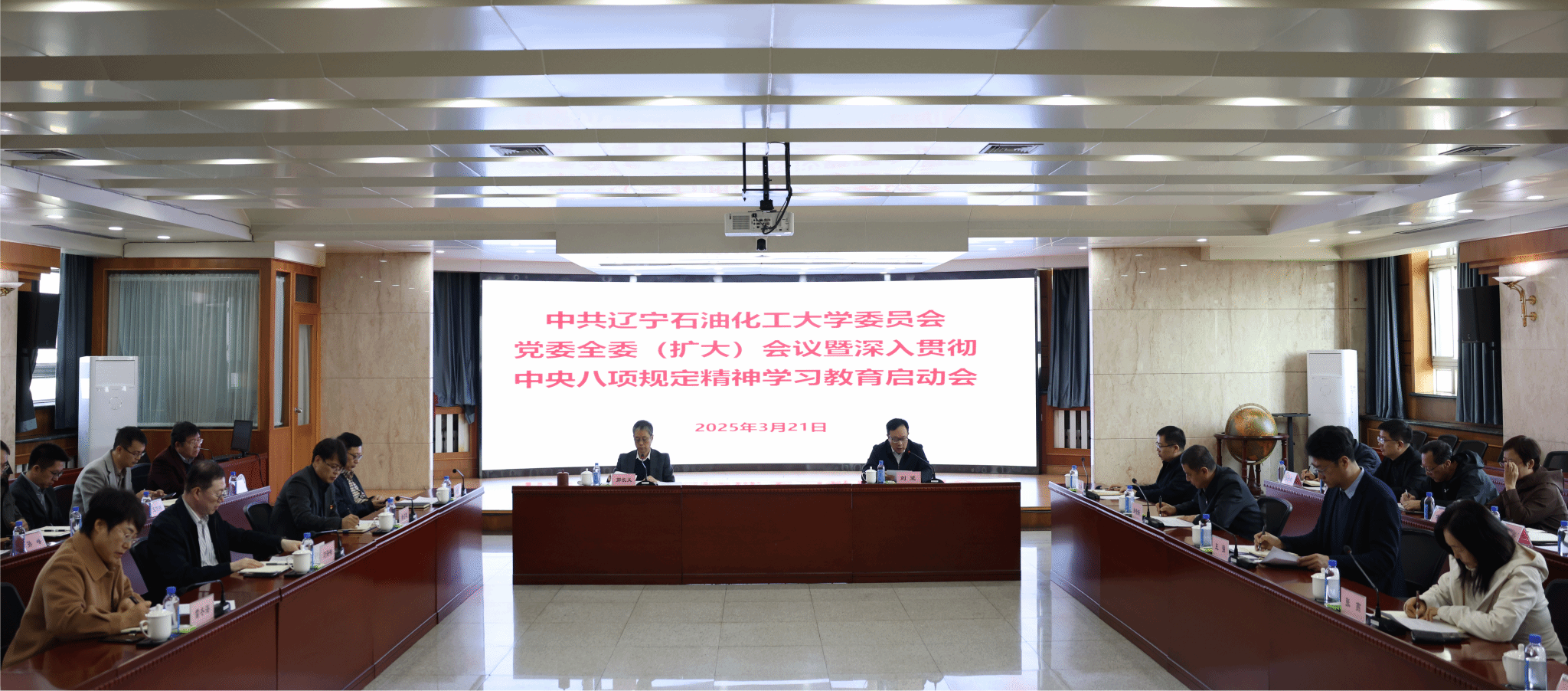 3月21日,學(xué)校黨委召開(kāi)黨委全委(擴(kuò)大)會(huì)議,研究部署深入貫徹中央八項(xiàng)規(guī)定精神學(xué)習(xí)教育工作。學(xué)校黨委書記郭長(zhǎng)義主持會(huì)議并講話,黨委副書記、牽頭負(fù)責(zé)行政工作的副校長(zhǎng)劉堅(jiān)傳達(dá)了《中共中央辦公廳關(guān)于在全黨開(kāi)展深入貫徹中央八項(xiàng)規(guī)定精神學(xué)習(xí)教育的通知》精神。黨委副書記鐘俊生宣布《成立中共遼寧石油化工大學(xué)委員會(huì)深入貫徹中央八項(xiàng)規(guī)定精神學(xué)習(xí)教育工作領(lǐng)導(dǎo)小組的決定》。校黨委常委、校領(lǐng)導(dǎo)、校黨委委員、紀(jì)委委員、二級(jí)黨組織書記出席會(huì)議。