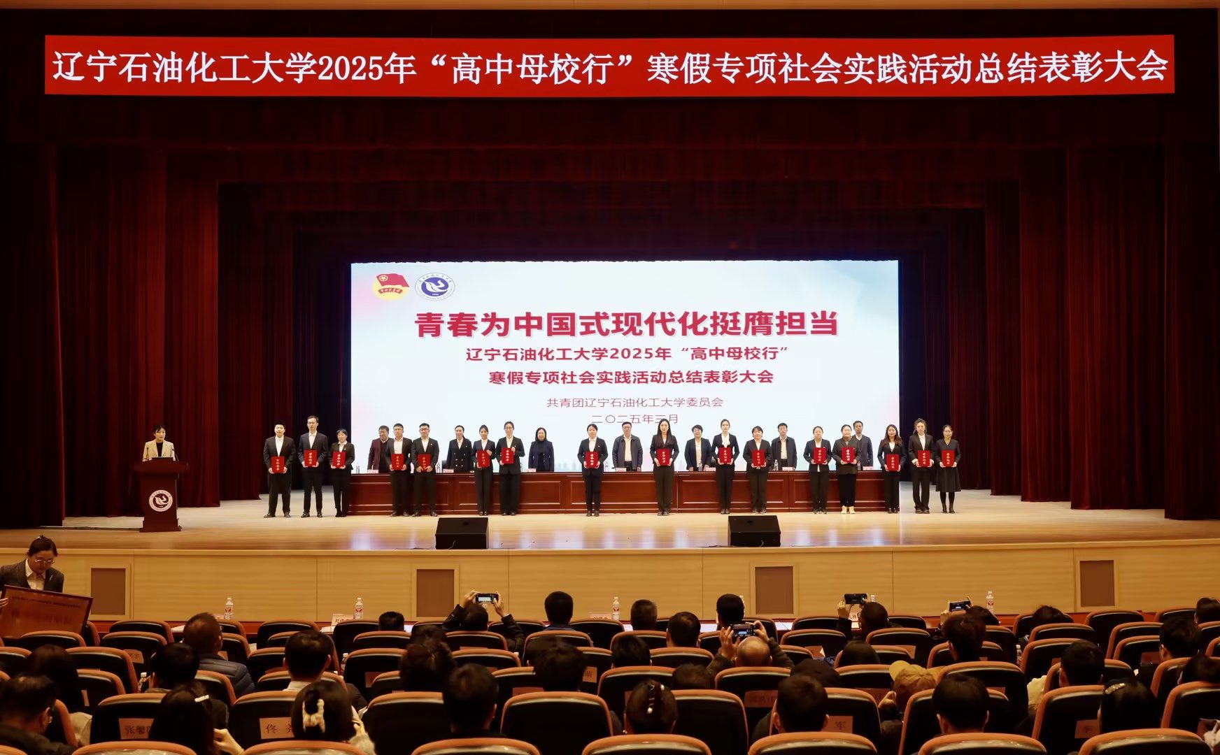 大會伊始,全體與會人員共同觀看《遼寧石油化工大學(xué)2025年“高中母校行”寒假專項社會實踐活動紀(jì)實》視頻,共同回顧了學(xué)生志愿者們在寒假期間深入高中母校,開展宣講、聯(lián)誼等實踐活動,展現(xiàn)了遼石化大學(xué)子的風(fēng)采與擔(dān)當(dāng)。