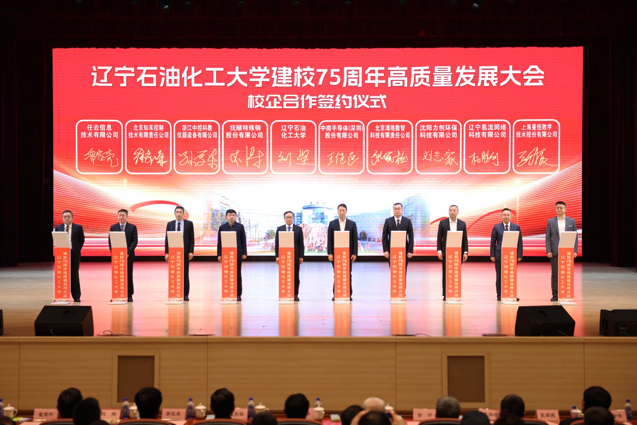 隨后,舉行校際校企合作簽約和揭牌儀式。學校與中國石油大學(北京)、中微半導體(深圳)股份有限公司等達成戰略合作。省科技廳副廳長張海波、省工信廳副廳長翟德懷、撫順市副市長張君昶、中國地質大學(北京)副校長段翔、遼寧省化工學會理事長孫云、大連西太平洋石油化工有限公司董事長何晨光、中國石油大連石化公司總經理花小兵、我校副校長劉海峰為校際校企合作揭牌。