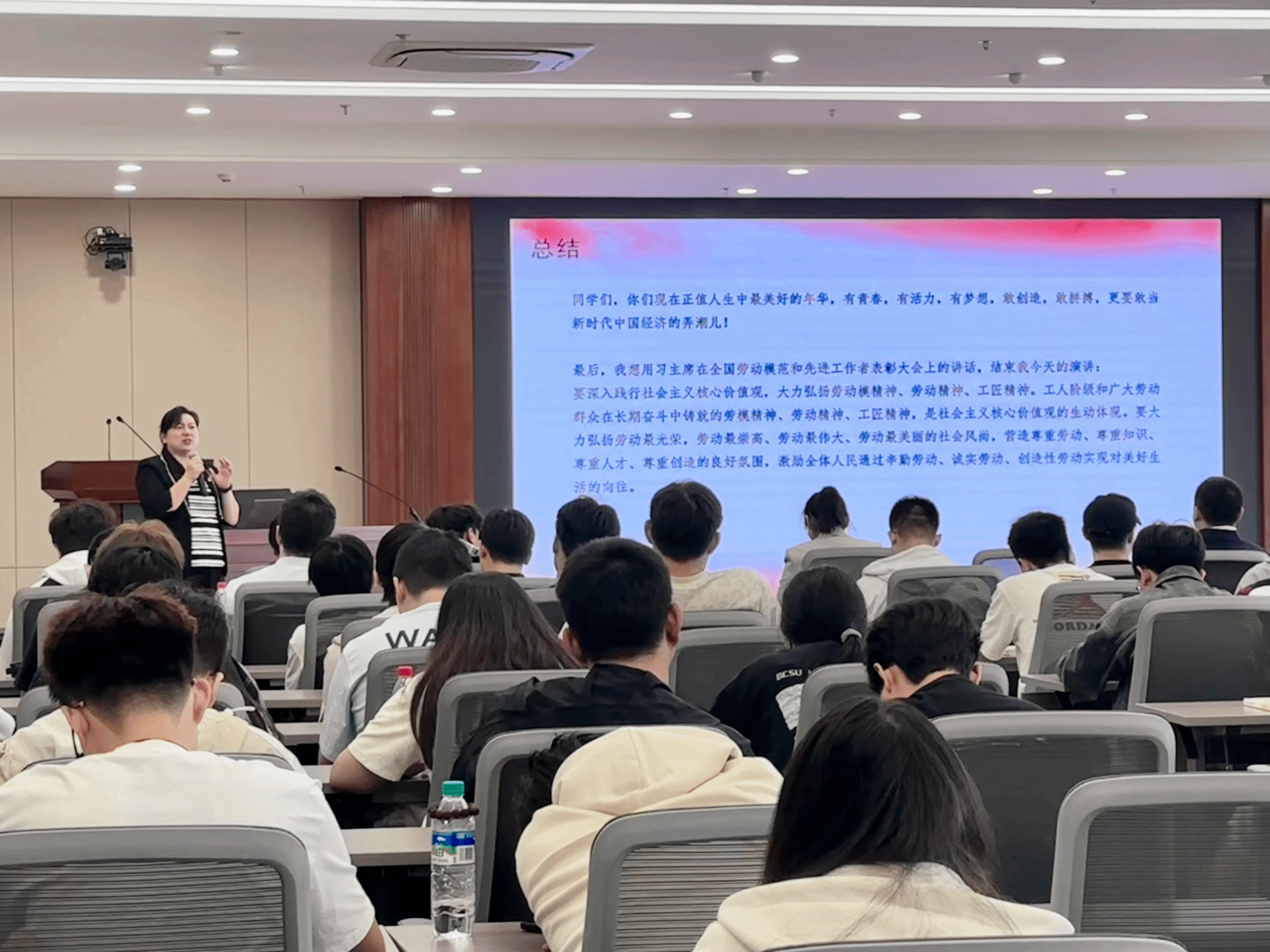 5月20日上午,馬克思主義學院特邀在慶祝中華全國總工會成立100周年暨全國勞動模范和先進工作者表彰大會上被授予“全國勞動模范”稱號的王秀霞同志,為學校師生講授一堂生動的思政課。學院院長劉志丹、副院長邵宏珠、教師劉靜妍及儲卓2301-02、儲運2304-05等170余名同學參加講座。