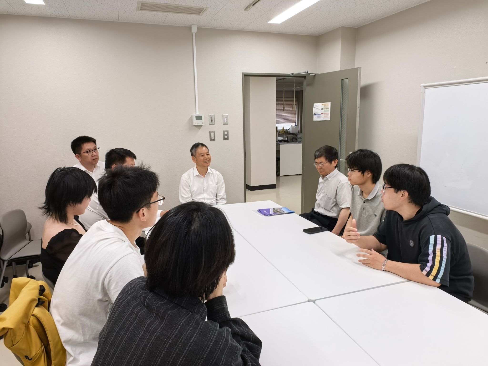 代表團隨后看望了在弘前大學學習的我校學生,學生們分享了在日本的學習生活體驗與跨文化適應經歷,并匯報了未來升學及就業規劃。郭長義與學生進行了親切交流,詳細了解他們的學習和生活情況,鼓勵大家充分發揮其橋梁紐帶作用,積極參與中日教育文化交流。