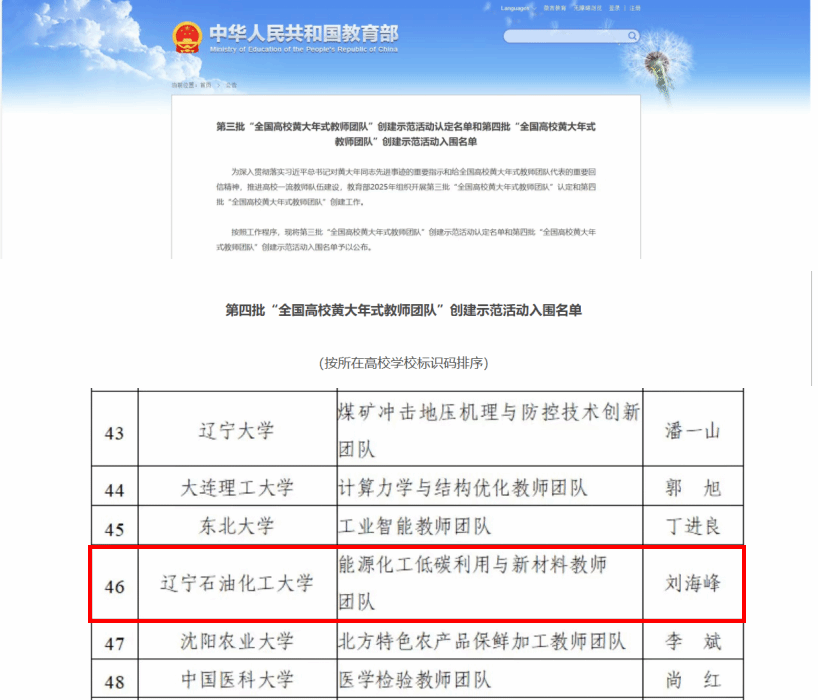 近日,教育部正式公布第四批“全國高校黃大年式教師團隊”創建示范活動入圍名單,我校“能源化工低碳利用與新材料教師團隊”成功入選。此次全國共200個高校教師團隊入圍,遼寧省僅6所高校上榜。這既是國家對高校教師隊伍“心有大我、至誠報國”崇高精神的肯定,更是對高校服務國家重大戰略能力的殷切期許——我校團隊的入選,標志著學校在能源領域“育人+科研”協同服務國家需求的實踐中,躋身國家級優秀教師團隊行列,為東北全面振興、國家能源安全與“雙碳”目標落地再添“撫油動能”。