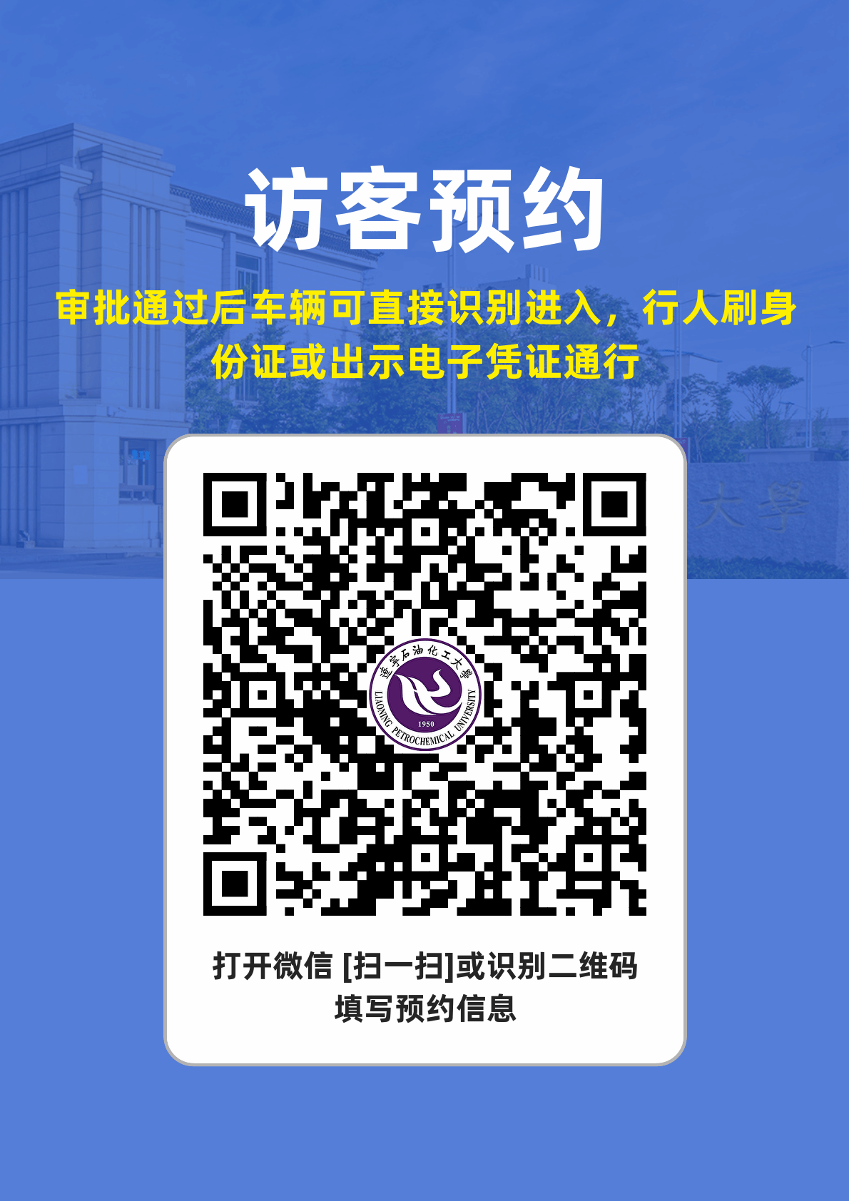 ①“遼寧石油化工大學”微信公眾號,綜合服務-訪客預約。