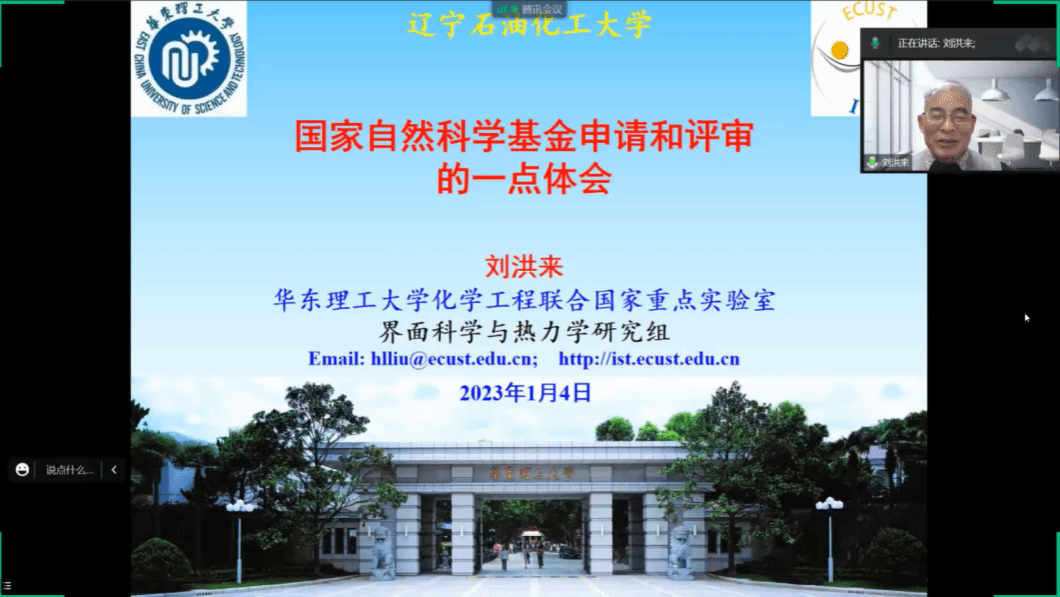 為了幫助我校教師了解國(guó)家自然科學(xué)基金評(píng)審流程,提升撰寫能力,進(jìn)一步提高基金申報(bào)質(zhì)量和資助率,1月4日晚7點(diǎn),2023年度國(guó)家自然科學(xué)基金申報(bào)培訓(xùn)會(huì)(第三輪)在線召開。會(huì)議特別邀請(qǐng)了華東理工大學(xué)博士生導(dǎo)師劉洪來教授作培訓(xùn)。副校長(zhǎng)楊占旭、科研處副處長(zhǎng)海軍、各相關(guān)學(xué)院科研院長(zhǎng)及申報(bào)教師150余人參加了會(huì)議。會(huì)議由楊占旭主持。