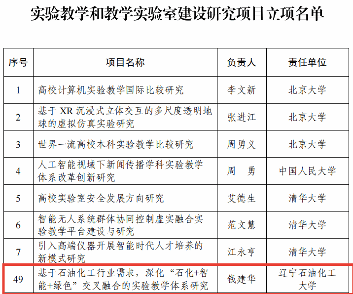 近日,教育部高等教育司發(fā)布了關于公布實驗教學和教學實驗室建設研究項目立項名單的通知,此次全國共批準234項,我省獲批8項。由校長錢建華作為負責人申報的“基于石油化工行業(yè)需求,深化‘石化+智能+綠色’交叉融合的實驗教學體系研究”獲得立項。