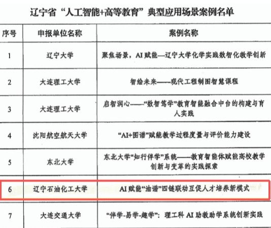 近日,遼寧省教育廳公布“人工智能+高等教育”典型應(yīng)用場(chǎng)景案例遴選結(jié)果,我校《AI賦能“油譜”四鏈聯(lián)動(dòng)互促人才培養(yǎng)新模式》項(xiàng)目成功入選,標(biāo)志著學(xué)校在智慧教學(xué)改革領(lǐng)域取得階段性重要成果。