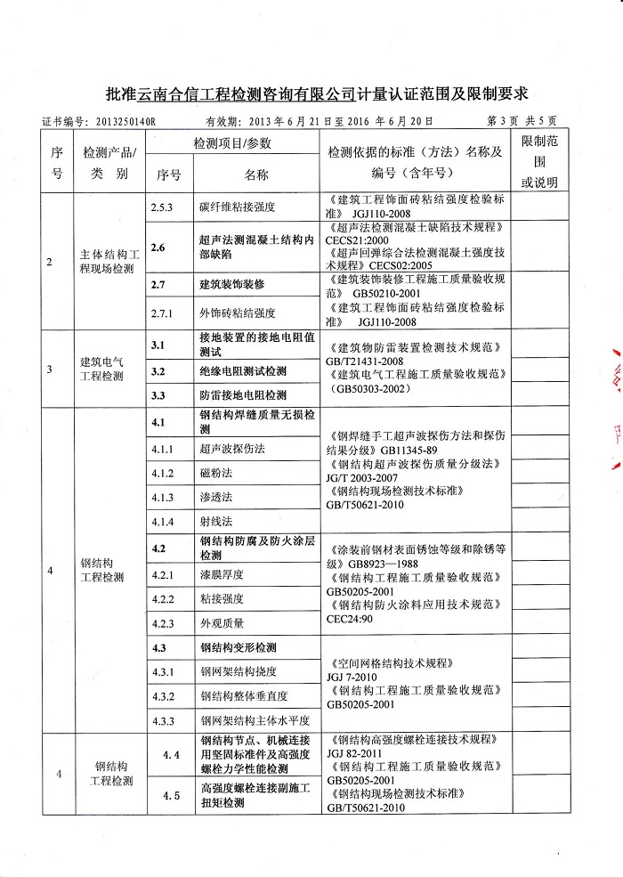云南合信工程檢測咨詢有限公司鋼結構結構工程檢測主要能力為: