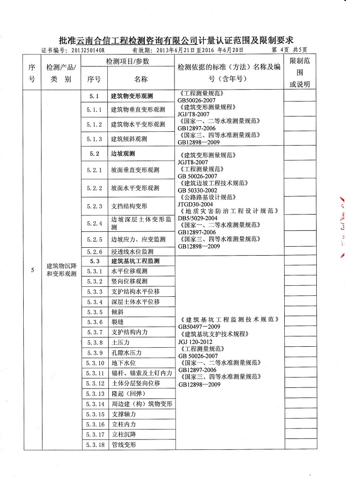 1、建筑物垂直、水平變形觀測:建筑物垂直變形觀測、建筑物水平變形觀測、建筑物垂直度觀測、邊坡垂直度觀測、邊坡水平度觀測、邊坡應力、應變監(jiān)測