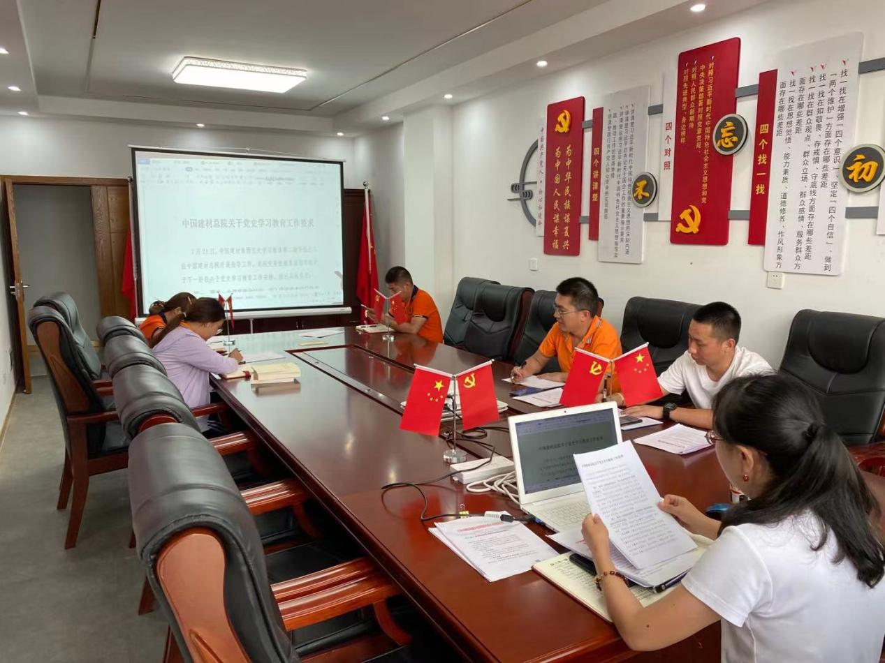 8月5日晚,按照中國建筑材料科學研究總院有限公司黨委相關要求,公司黨支部書記陳梅組織公司全體黨員開展黨史學習教育,認真學習中央、國資委及集團公司相關會議精神。