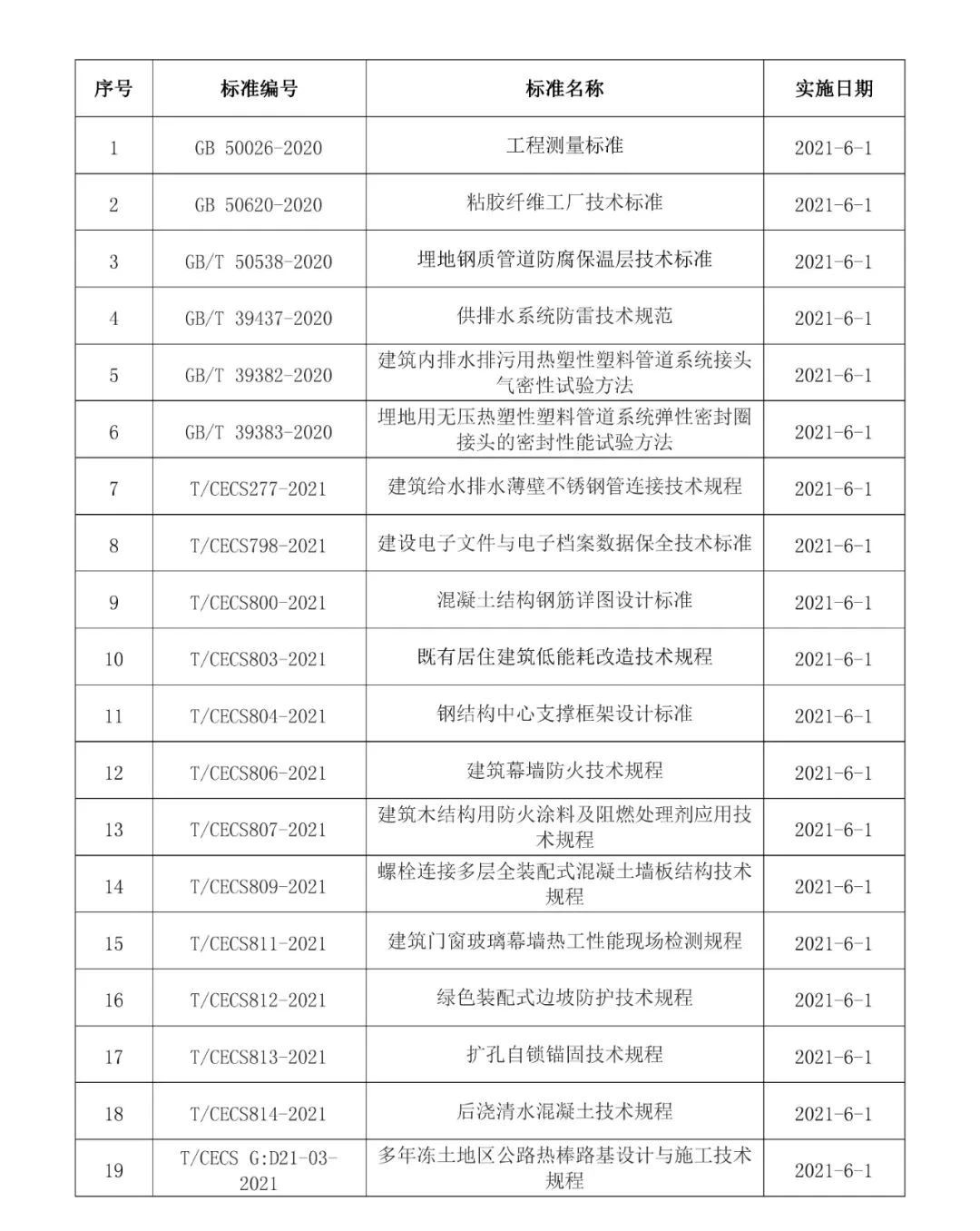 2021年6月開始實施的工程建設標準