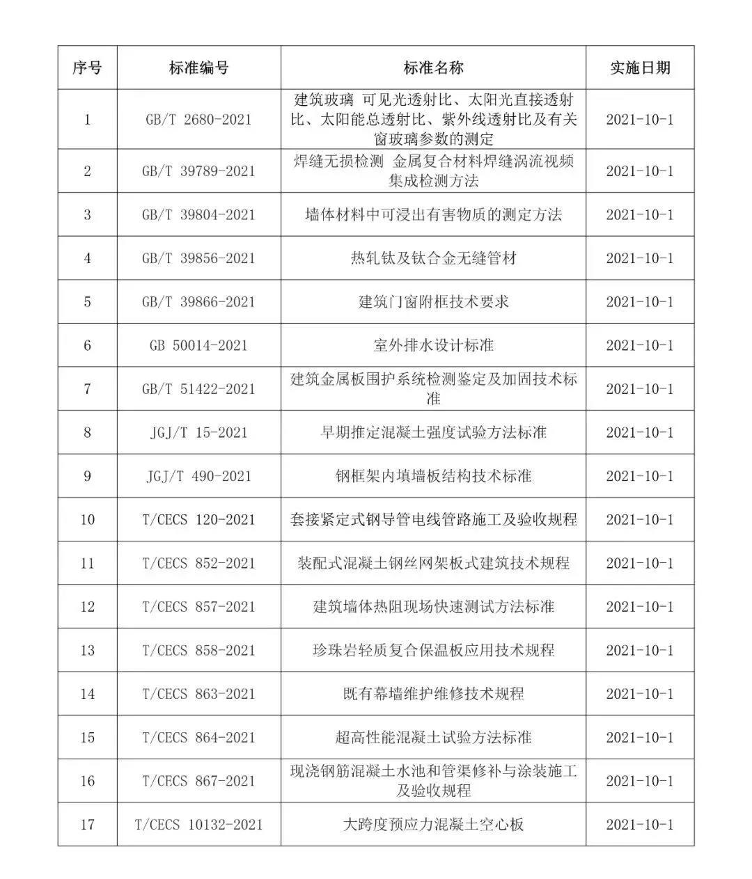 2021年10月開(kāi)始實(shí)施的工程建設(shè)標(biāo)準(zhǔn)