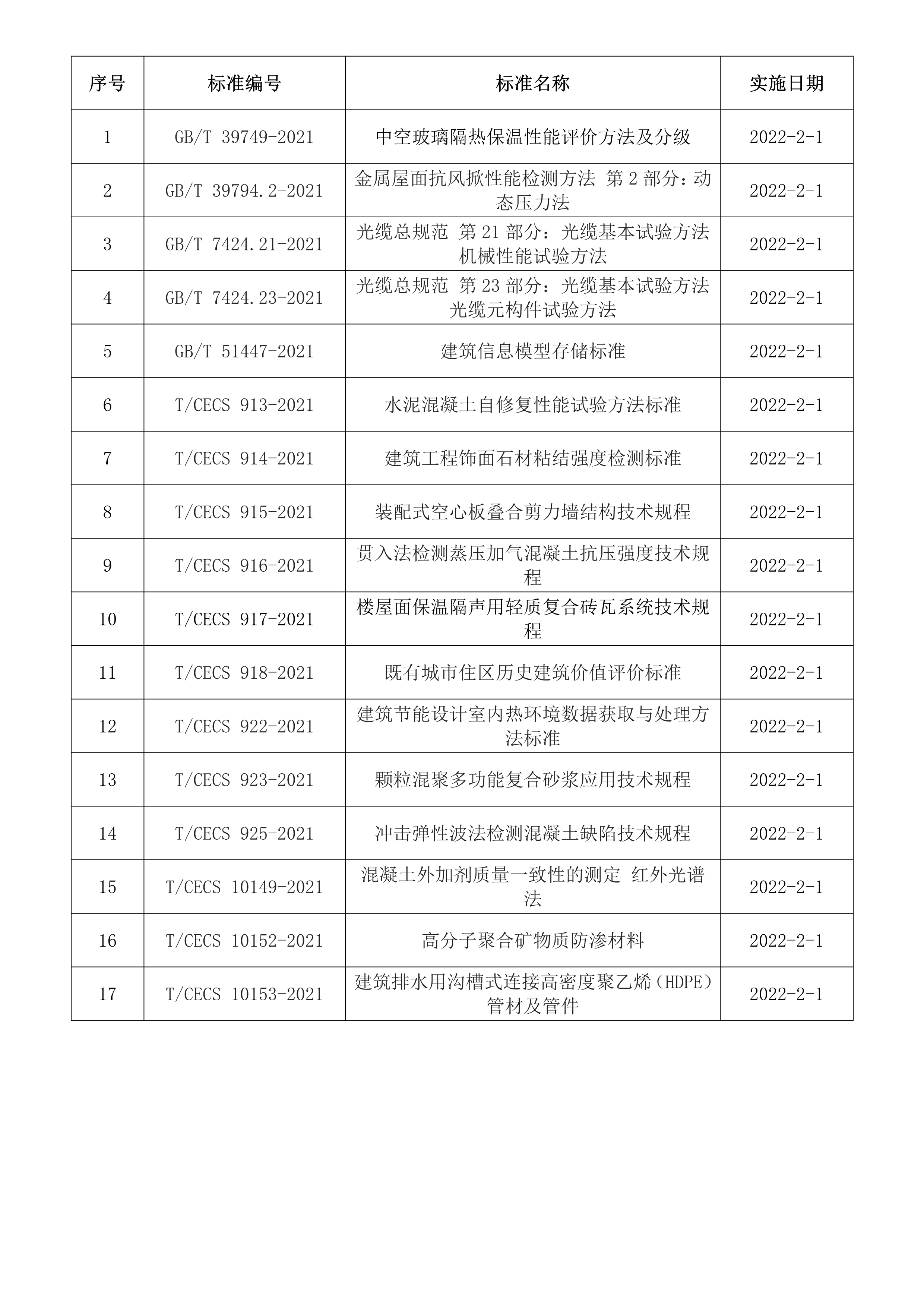 2022年2月開始實施的工程建設標準