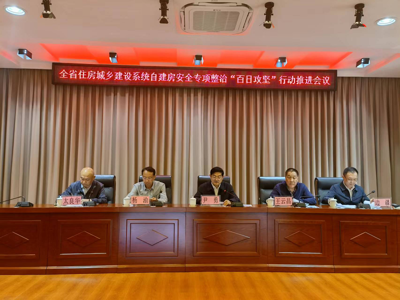 2022年5月13日下午,省住房城鄉建設廳組織召開全省住建系統自建房安全專項整治“百日攻堅”行動推進電視電話會議,廳黨組書記、廳長尹勇出席會議并講話。