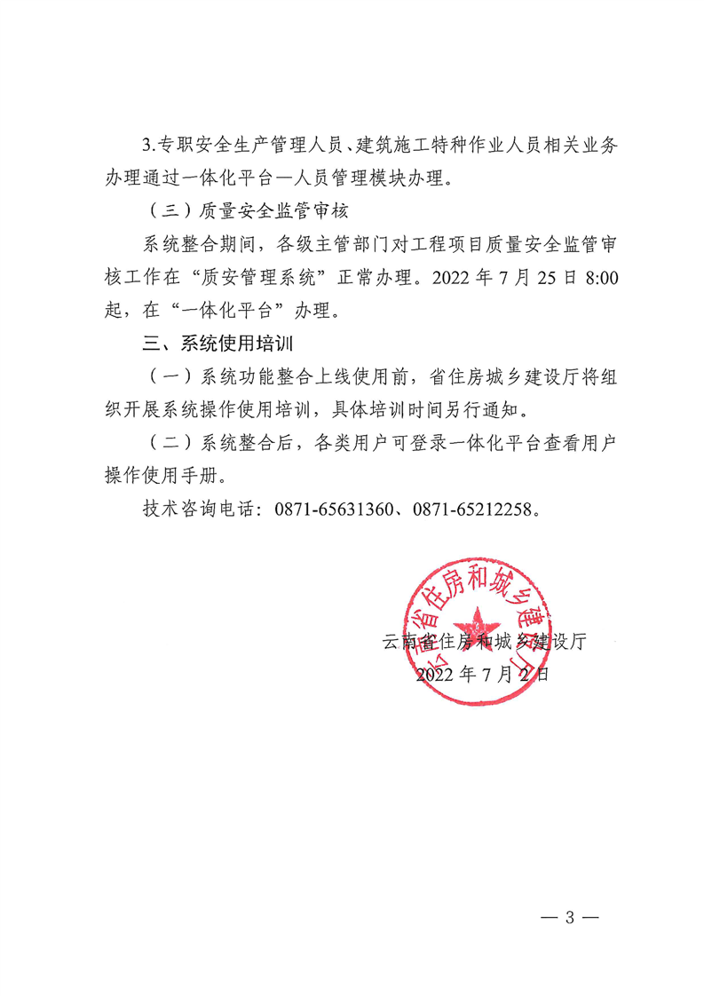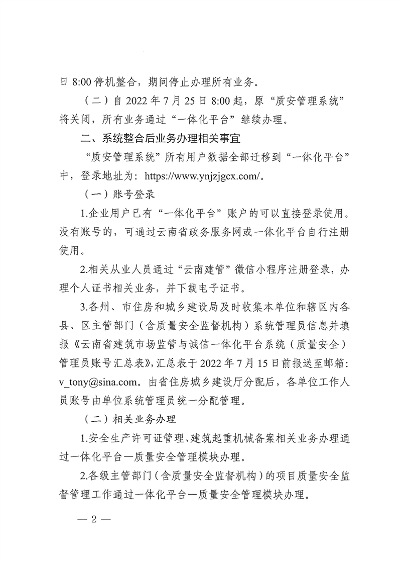 云南省住房和城鄉建設廳關于云南省建設工程質量安全監督管理信息系統功能整合停機的通知