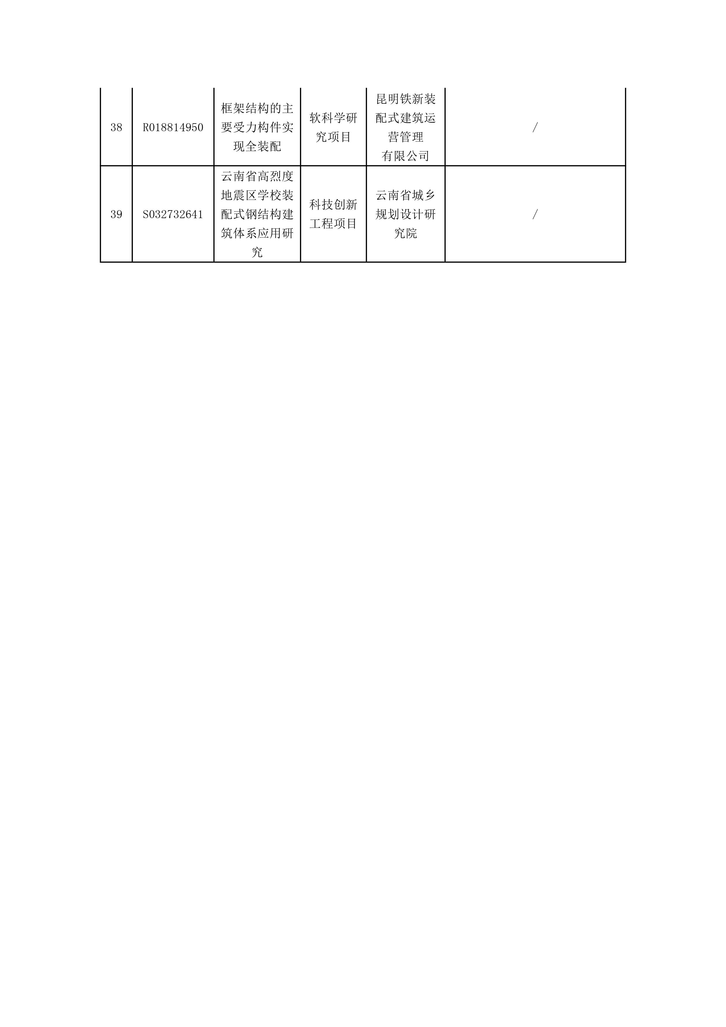 為貫徹落實國家創新驅動發展戰略,做好住房城鄉建設領域科技創新引領示范,進一步提升行業創新能力,按照《云南省住房城鄉建設領域科學技術計劃項目管理實施細則》(云南省住房和城鄉建設廳公告第61號)和《云南省住房和城鄉建設廳關于組織申報2022年科學技術計劃項目的通知》要求,省住房城鄉建設廳組織開展了2022年科學技術計劃項目立項審查,現對通過評審的39個科學技術計劃項目予以公示(詳見附件),接受社會各界監督。