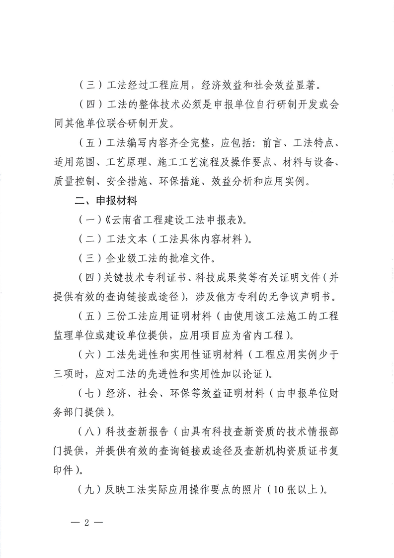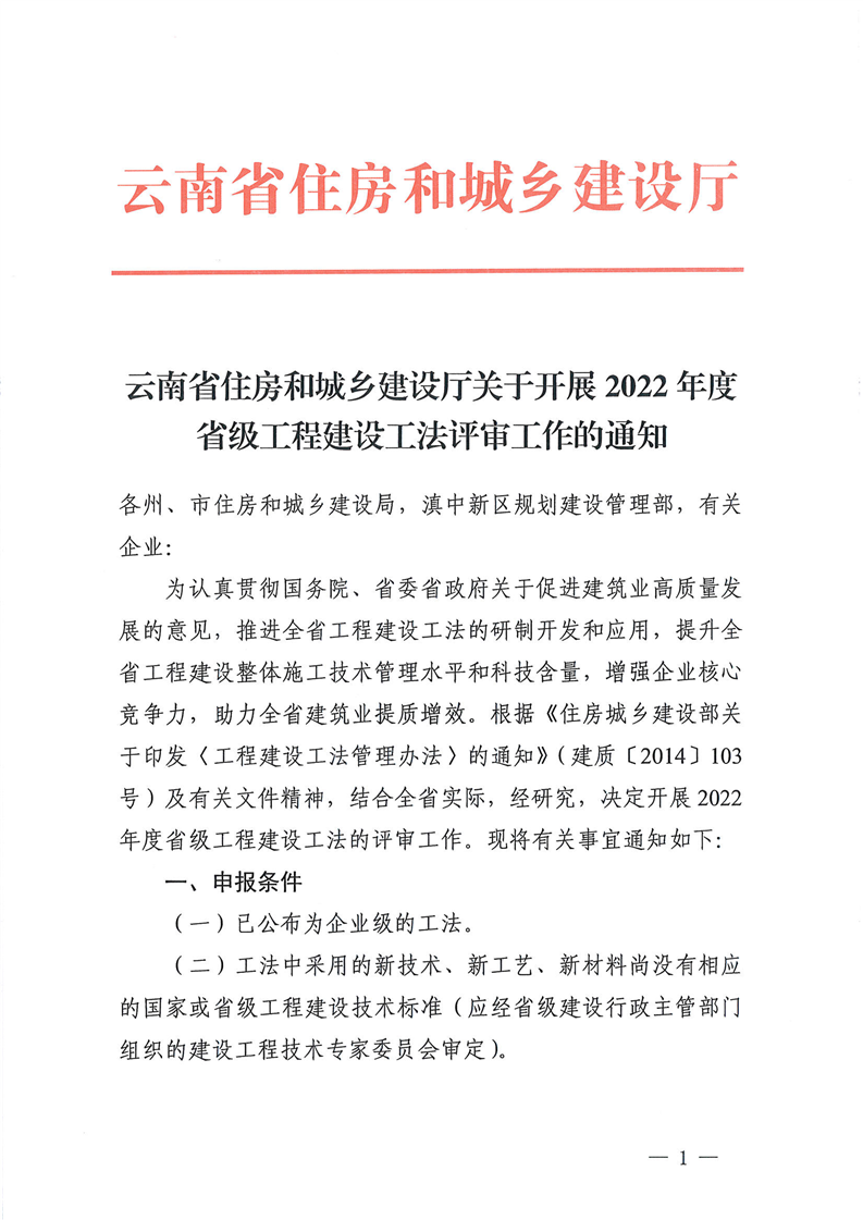 云南省住房和城鄉建設廳關于開展2022年度省級工程建設工法評審工作的通知