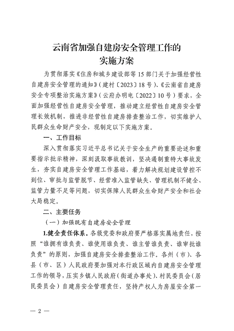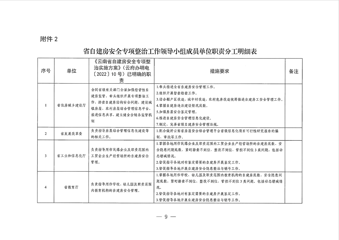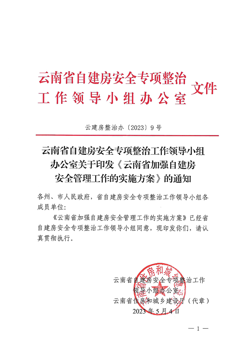 云南省自建房安全專項整治工作領(lǐng)導(dǎo)小組辦公室關(guān)于印發(fā)《云南省加強(qiáng)自建房安全管理工作的實施方案》的通知