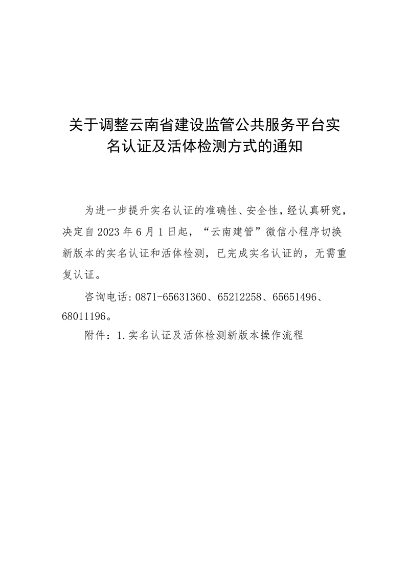 關于調整云南省建設監管公共服務平臺實名認證及活體檢測方式的通知