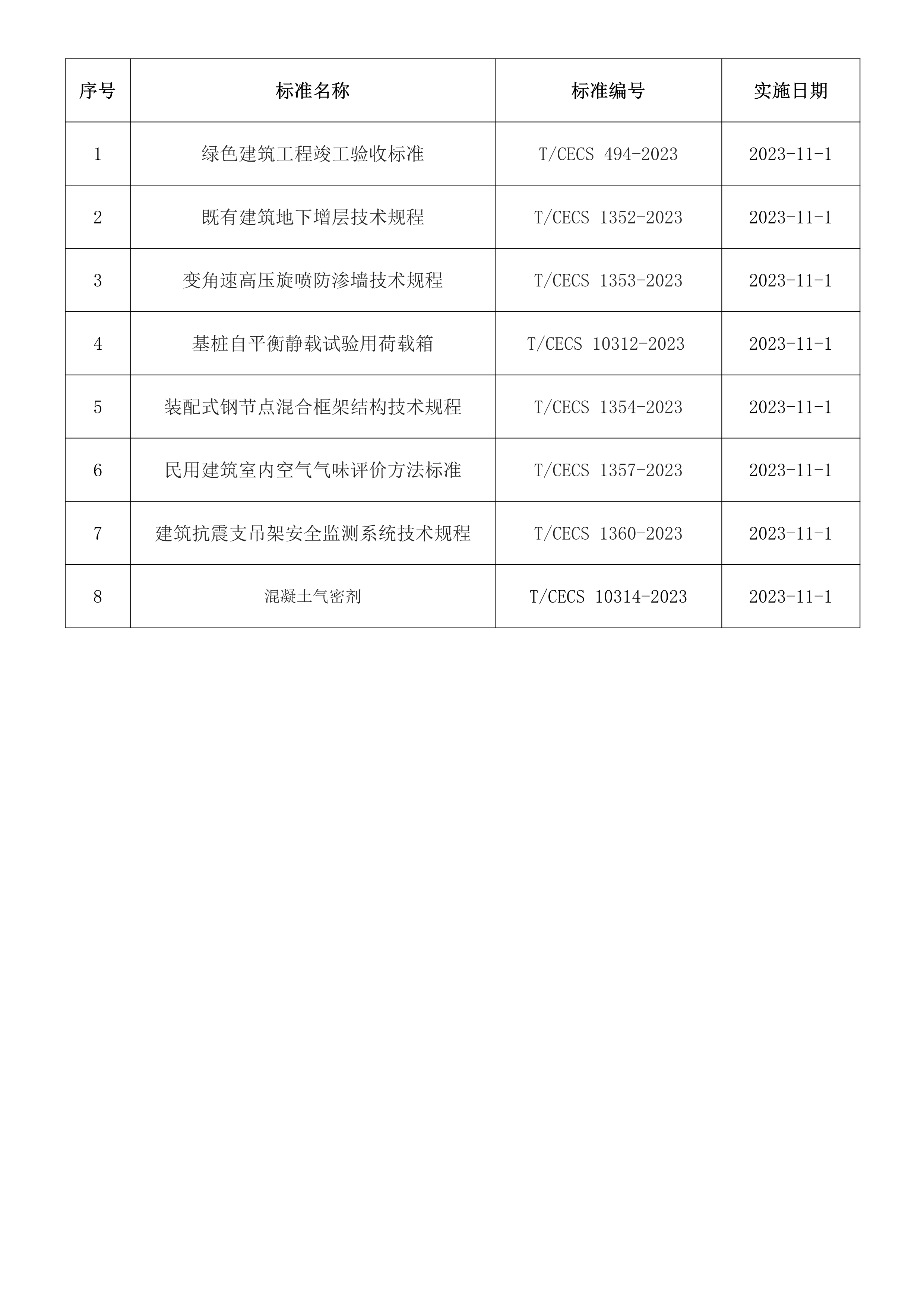 2023年11月開始實施的工程建設標準